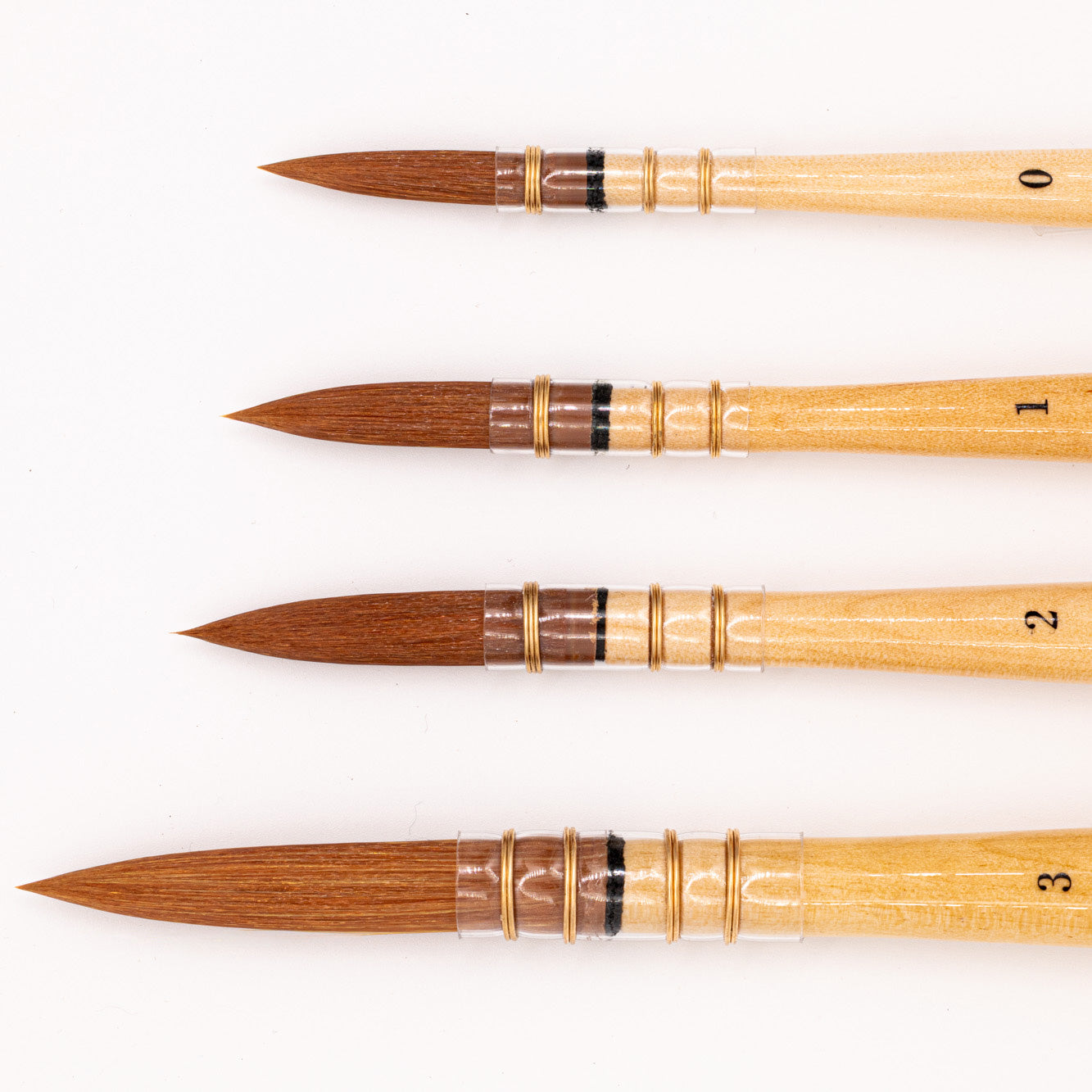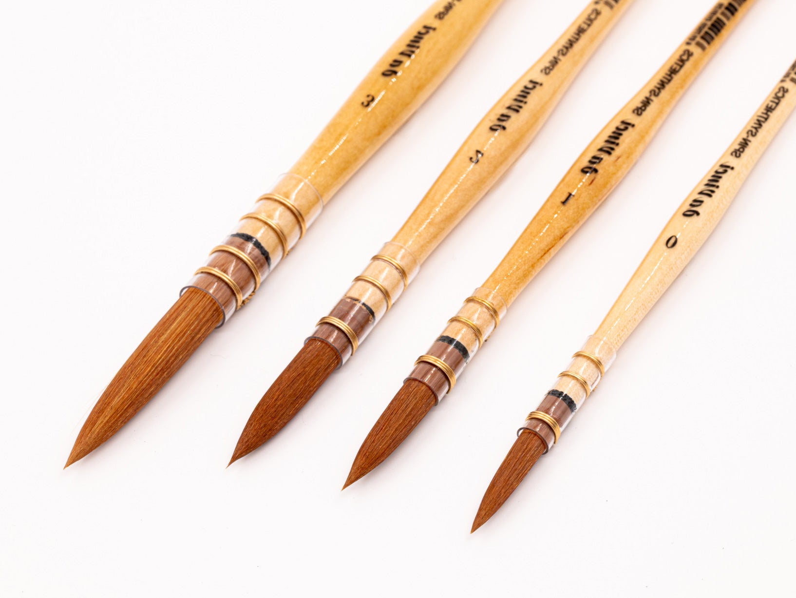 Hergestellt aus braunen, hochelastischen Kunstfasern, die eine perfekte Rückstellkraft (oder einen „Schnappeffekt“) bieten. Das bedeutet, dass die Borsten nach jedem Strich schnell in ihre ursprüngliche Form zurückkehren. Beim Malen spürt man ein reaktionsschnelles „Rückfedern“: Die Haare biegen sich unter Druck und schnellen sofort zurück, wodurch eine saubere, präzise Spitze erhalten bleibt.